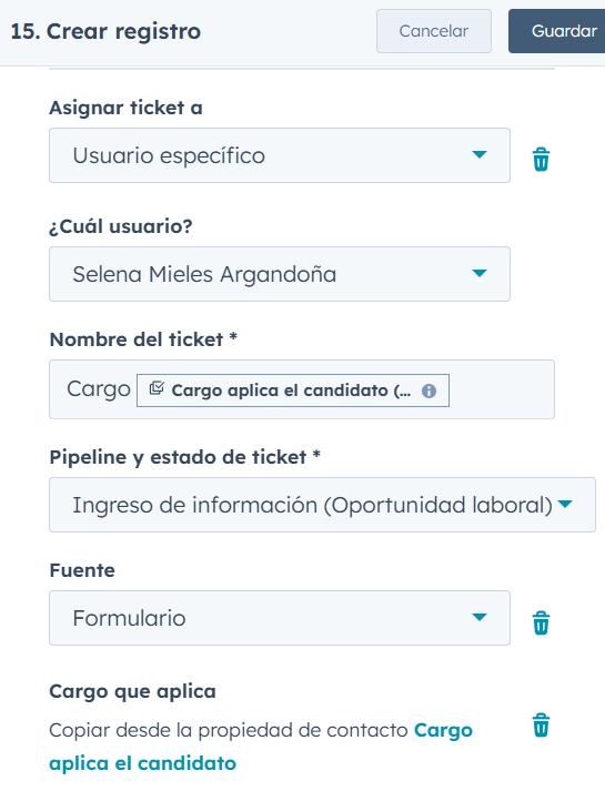 Utilizando la automatización a través de workflows en HubSpot se logró asignarlo a personas específicas dentro del equipo de selección, de acuerdo al puesto que postula el candidato: